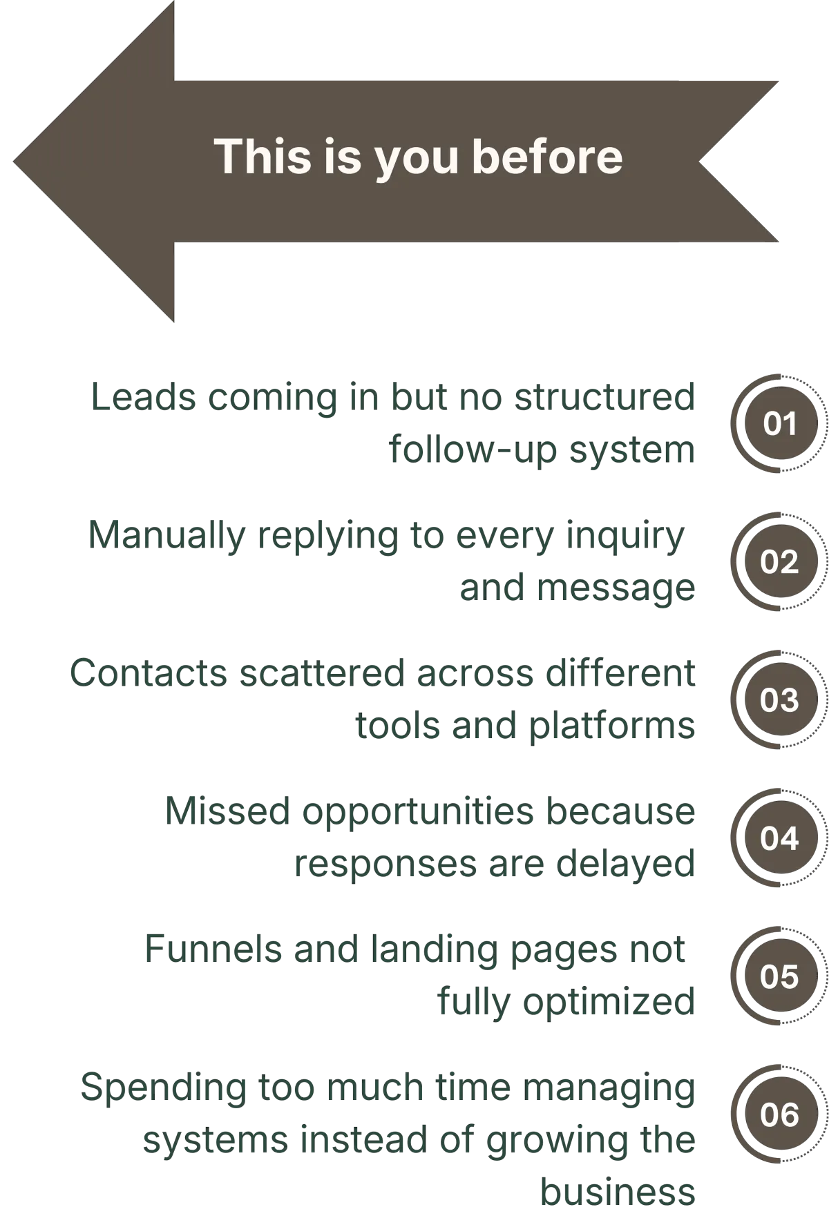 I design and implement backend systems that eliminate missed leads, fix broken workflows, and create a clear path from lead to conversion.